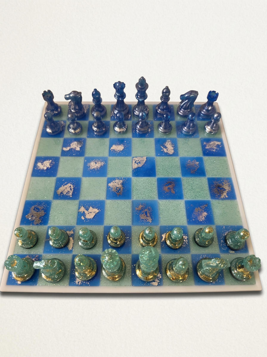Luxe Epoxy Schaakbord – Handgemaakt & Uniek